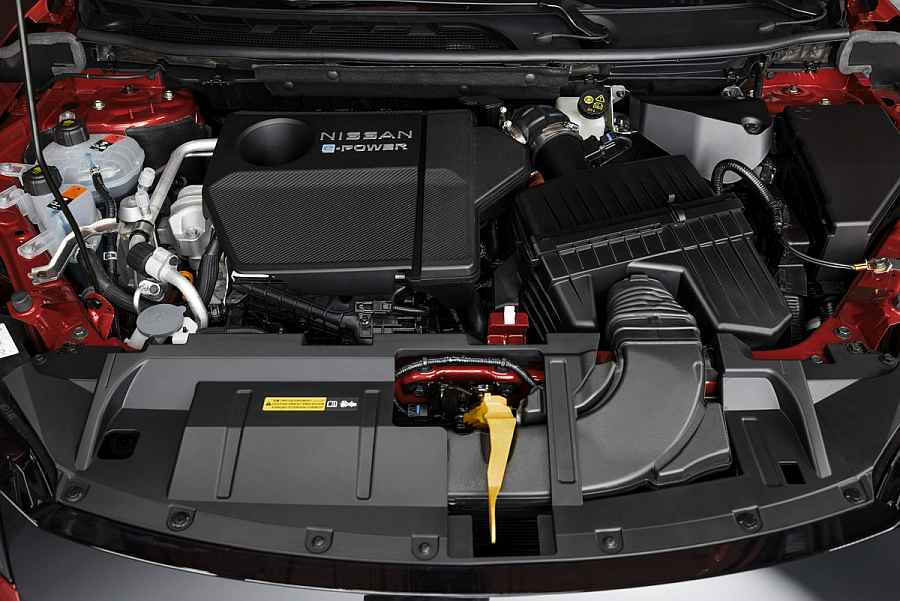 Tajna jedinstvenog i inovativnog pogonskog sklopa tehnologije e-POWER leži u odsustvu mjenjača, pri čemu kotače pokreće isključivo električni motor. Činjenica da 100 % električni motor pokreće kotače znači da je odziv motora trenutačan i linearan, a okretni moment visok. e-POWER nudi autentičan užitak električne vožnje, bez potrebe za punjenjem, te je odlično rješenje za kupce koji žele promjenu, ali još uvijek nisu spremni kupiti 100 % električan automobil. Napredni trocilindarski motor s turbopunjačem i tehnologijom varijabilnog kompresijskog omjera služi isključivo za proizvodnju električne energije koja se uz pomoć invertera prenosi električnom motoru snage 140 kW i/ili bateriji kapaciteta 1,8 kWh (ovisno o uvjetima vožnje). Motor radi tiho kako bi osigurao potrebnu energiju za bateriju i motor. Osim toga, programiran je tako da isporuku električne energije prilagodi brzini vozila, a sve kako bi pozadinski zvuk njegova rada bio u skladu s ostvarenim ubrzanjem.