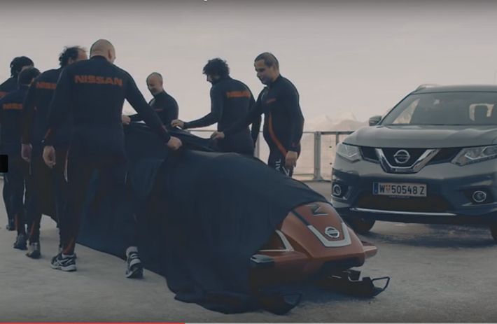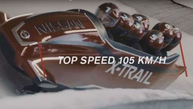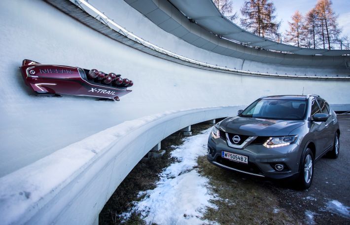 Nissan je ponovno srušio konvencije predstavljanjem prvog boba sedmerosjeda u Innsbrucku u Austriji. Premijerna vožnja boba X-Trail Bobsleigh nadahnutog dizajnom Nissana X-Trail održana je na legendarnoj olimpijskoj stazi u Iglsu, a bobom je upravljao britanski osvajač olimpijske medalje Sean Olsson. Nissan je surađivao sa stručnjacima za bobove kako bi tradicionalni bob četverosjed pretvorio u sedmerosjed nadahnut modelom X-Trail koji postiže brzinu od 100 km/h, a u zavojima postiže G-sile od 4,5 G.