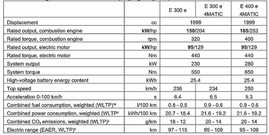 Mercedes-Benz će na tržištu ponuditi čak tri plug-in hibridna modela četvrte generacije od predstavljanja nove E-klase. S električnom snagom od 95 kW (129 KS) i potpuno električnim dosegom do preko 100 km (WLTP), oni će u mnogim slučajevima i mnogo dana biti na cesti isključivo električni, bez upotrebe motora s unutarnjim izgaranjem. Uslijedit će više plug-in hibrida s dizelskim motorima s unutarnjim izgaranjem.