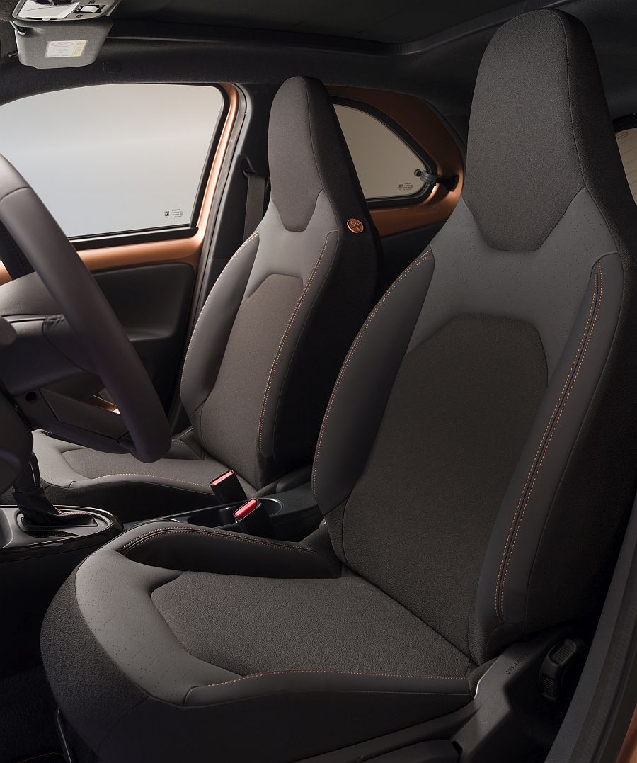 Također, doprinos smanjenju ugljičnog otiska imaju reciklirani plastika i tkanina za inovativne materijale sjedala poput novog SakuraTouch® koji je bez životinjskih materijala. SakuraTouch je izrađen od više od 40 %*** PVC-a biljnog podrijetla, dobivenog iz nusproizvoda prerade drvne celuloze, i uključuje otpadne čepove pluta iz vinske industrije i reciklirani PET, bez kompromisa u izdržljivosti. Ova pionirska mješavina materijala značajno smanjuje emisiju CO₂ tijekom proizvodnje materijala – čak za 95 % u odnosu na pravu kožu.Nadalje, Toyota Motor Manufacturing Czech u Kolínu, gdje se proizvodi Aygo X, koristi električnu energiju iz obnovljivih izvora, dok su optimizirana logistika dijelova i vozila također doprinijeli smanjenju ugljičnog otiska.