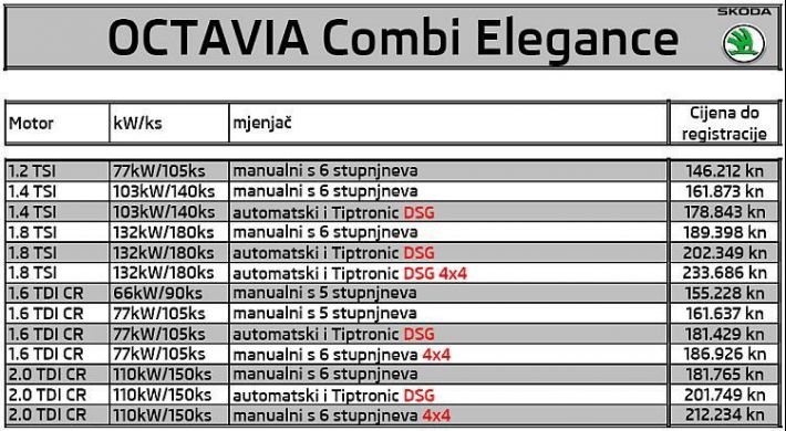 S novom Škoda Octavijom Combi marka Škoda nastavlja svoju ofenzivu modela. Nekoliko tjedana nakon lansiranja limuzine modela Octavia treća generacija modela Octavia Combi slavi svoj dolazak u Hrvatsku. Octavia Combi oduševljava svojom ponudom prostora izvan konkurencije, novim dizajnom, funkcionalnošću, inovativnim sigurnosnim sustavima i sustavima udobnosti, štedljivom potrošnjom, brojnim „Simply Clever“ idejama i omjerom uloženog i dobivenog tipičnim za marku Škoda. Dimenzije nove Škoda Octavije Combi znatno su se povećale te ona oduševljava svojim dinamično elegantnim dizajnom.