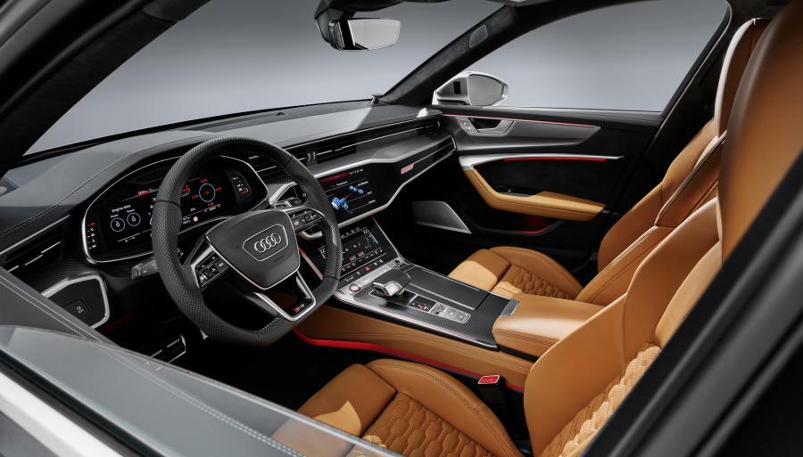 Pionirski dizajn unutrašnjosti orijentirane na vozača, s umetcima u boji aluminija i antracita, ističe sportski karakter novog modela RS 6 Avant. S vodoravnim rasporedom i podijeljenom trodimenzionalnom strukturom prednja ploča se čini lagana i uglađena. Korisničko sučelje potpuno digitalnog operativnog sustava ujednačeno je s čistim dizajnom prednje ploče. Gornji MMI na dodir osjetljivi zaslon skoro je nevidljivo integriran u arhitekturu prednje ploče. RS Monitor prikaz vozaču pruža mogućnost da gornji zaslon prikazuje status temperature pogonskih komponenata, vrijednosti G ubrzanja zajedno s informacijama o tlaku u gumama i temperaturi. Na Audijevom virtualnom kokpitu, specijalni RS prikazi pružaju informacije o tlaku u gumama, momentu, snazi, temperaturi motornog ulja, tlaku prednabijanja, vremenima krugova, ubrzanju i G silama. Svjetlosno upozorenje vozača potiče da prebaci u viši stupanj kada se dosegne maksimalni broj okretaja motora. Opcijski head-up zaslon također prikazuje nekoliko RS specifičnih grafičkih prikaza. Potpuno perforirani sportski kožom presvučeni upravljač, s ravnim donjim dijelom, s novim većim aluminijskim RS ručicama za izmjenu stupnjeva prijenosa, uključuje višenamjenske tipke koje vozaču također omogućuju direktni odabir novih Audi drive select režima RS1 i RS2. RS i RS 6 logotipi ukrašavaju unutrašnjost na upravljaču, sjedalima i osvjetljenim pragovima prednjih vrata. Audi Sport amblem projicira se na cestu kada se otvore prednja ili stražnja vrata.