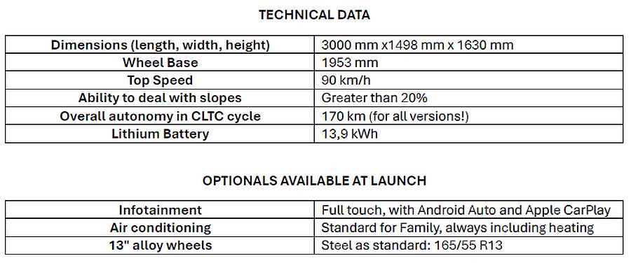 KLIMA UREĐAJ, 13″ ALUMINIJSKI NAPLATCI I ZASLON NA DODIR SA ANDROID AUTO I APPLE CARPLAY, koji se također može konfigurirati kao opcija, kako bi se zadovoljile potrebe cijele nove publike u segmentu mikro automobil. Uz popust od 2.000 eura, za cijelu 2025. godinu dobit ćete standardno ugovor s tvrtkom IMA ITALIA ASSISTANCE koja novim korisnicima nudi cjelovito i električno usmjereno pokriće pomoći na cesti tijekom 5 uzastopnih godina.
