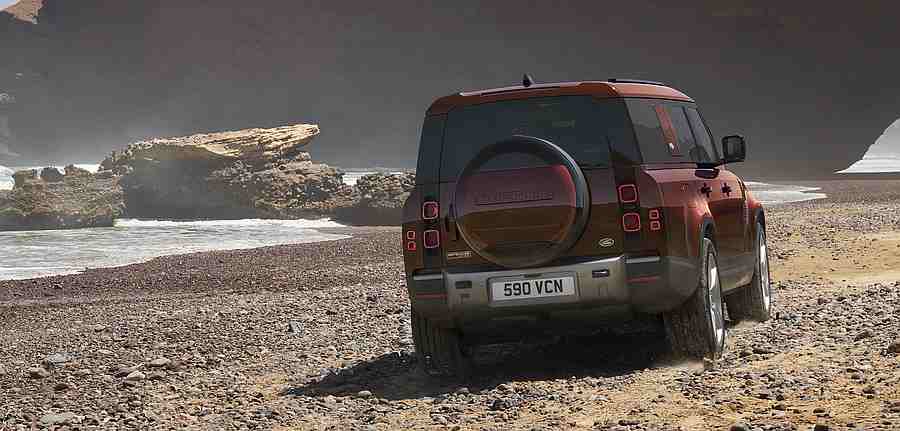 Za održavanje prepoznatljivog stražnjeg dizajna na Defenderu, Land Roverovi inženjeri osmislili su suptilno podizanje stražnjeg djela u stilu brodske krme koji također na najveću moguću razinu povećava jedinstvenu sposobnost za sve terene koju kupci očekuju od Defendera, s kutom stražnjeg prepusta od 28,5 stupnjeva2. Okviri stražnjih LED rasvjetnih tijela ponovno su inženjerski projektirani da bi se zadržale tri izražajne linije koje definiraju Defenderov bočni profil dok se suptilno uzdižu prema stražnjem dijelu. Pristup prostranom prtljažnom prostoru je nepromijenjen, a dostupan je zaštitni tvrdi poklopac u boji karoserije za rezervni kotač, što odražava pozicioniranje Defendera 130 na vrh Defenderove linije. Narvik crne krovne šine ugrađene su kao standard, dok je Defenderov puni asortiman dodatne opreme za vanjštinu također dostupan, uključujući pakete Explorer, Adventure, Country i Urban.