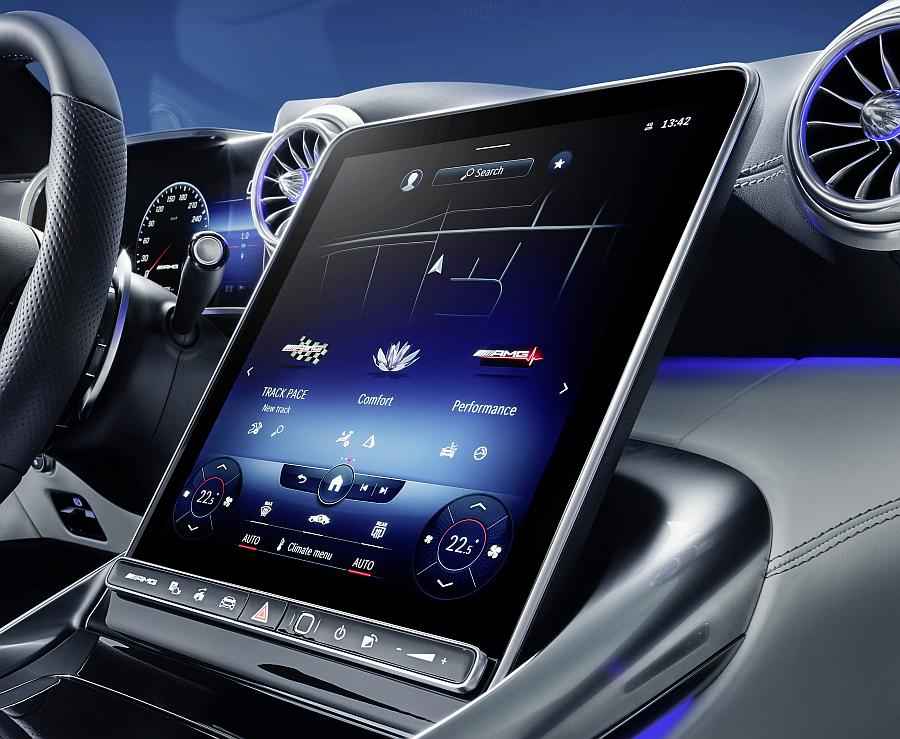 Uz pomoć brojnih senzora, kamera i radara, sustavi pomoći u vožnji promatraju promet i okolinu novog roadstera. Ako je potrebno, inteligentni pomagači mogu intervenirati brzinom munje. Kao iu sadašnjim generacijama Mercedesa C-Klase i S-Klase, vozač je podržan brojnim novim ili poboljšanim sustavima – u svakodnevnim situacijama, na primjer, pomoću pomoći za prilagodbu brzine, kontrole udaljenosti, upravljanja i promjene trake. Kada prijeti opasnost, sustavi pomoći mogu odgovoriti na nadolazeće sudare kako situacija zahtijeva. Rad sustava vizualiziran je novim konceptom zaslona u instrument tabli. Novi zaslon za pomoć u instrument tabli jasno i transparentno prikazuje kako sustavi pomoći u vožnji rade na cijelom zaslonu. Vozač tamo može vidjeti svoj automobil, trake, oznake traka i druge sudionike u prometu kao što su automobili, kamioni i dvokotači na apstraktan 3D način. Status sustava i rad asistenata vizualizirani su u ovom prikazu okoline. Novi animirani zaslon pomoći temelji se na 3-D sceni generiranoj u stvarnom vremenu. Ovaj dinamičan, visokokvalitetan prikaz čini rad sustava pomoći u vožnji transparentnim kao opipljivo iskustvo proširene stvarnosti.