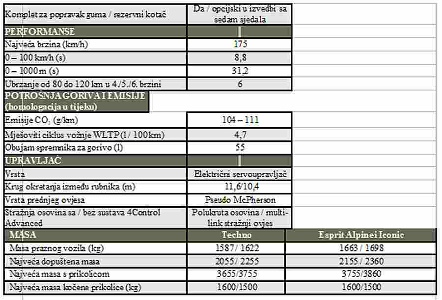 – obujam prtljažnika izvedbe sa sedam sjedala iznosi 159 l s postavljenim trećim redom sjedala.