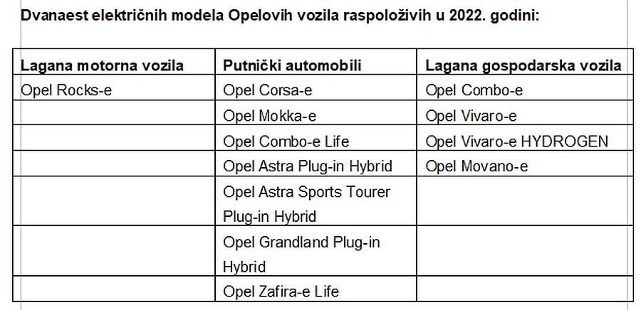 – Opelova ponuda trenutno uključuje dvanaest električnih verzija