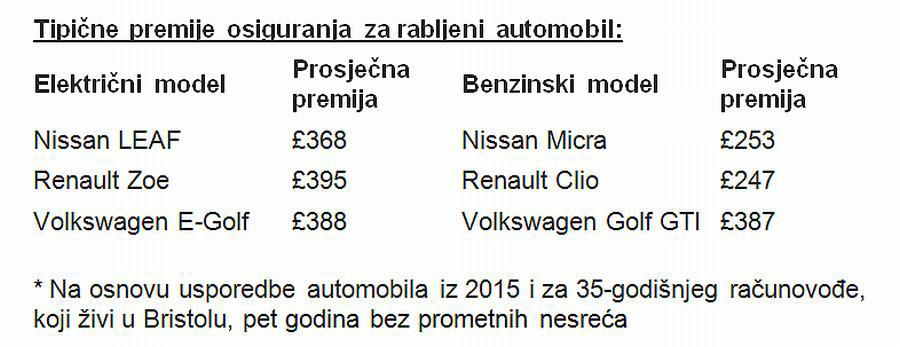 – osiguranje električnih automobila do 60% je skuplje od osiguranja benzinskih ekvivalenata