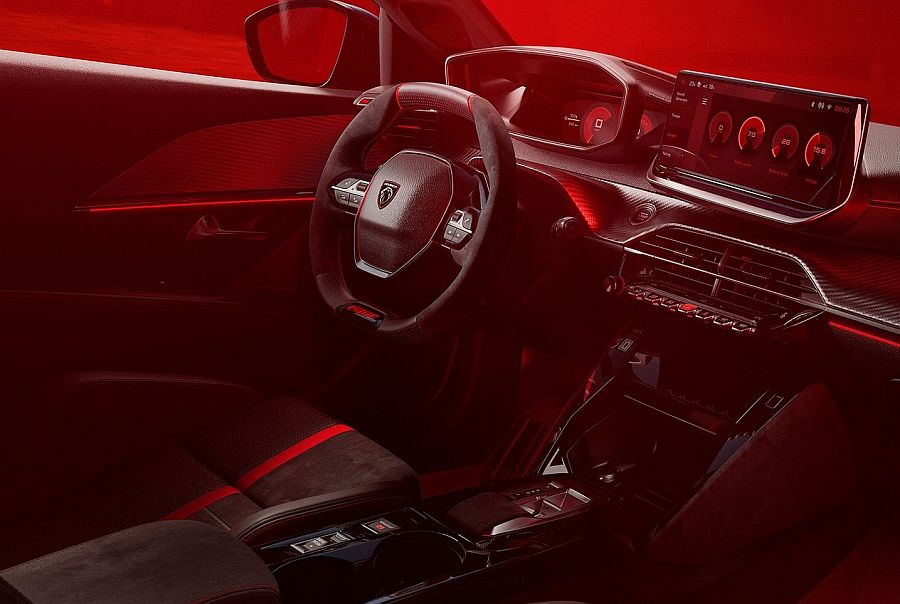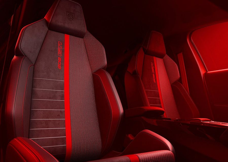 Sjedala posebno privlače pažnju, s integriranim naslonima za glavu i središnjom crvenom trakom inspiriranom 205 GTi. Peugeot je također dao crvenu temu digitalnim zaslonima i ambijentalnom osvjetljenju. Sve u svemu, dizajn spaja modernu tehnologiju (poput digitalnog kokpita) s retro GTi duhom na ukusan način.