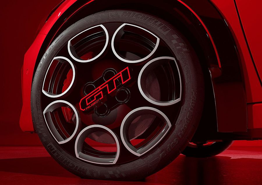 Stilski detalji iznutra i izvana daju puno naklona Peugeotovoj baštini. E-208 GTi nosi jarko crvenu boju kao standard – pozdrav klasičnoj boji 205 GTi – uz zatamnjene lukove kotača i suptilnu GTi oznaku. Čak i aluminijski naplatci upućuju na stari “pepperpot” stil i ukrašeni su crvenim GTi logom. U unutrašnjosti ima puno crvenih detalja: crveni tepisi, šavovi i sigurnosni pojasevi podsjećaju na GTi tradiciju.