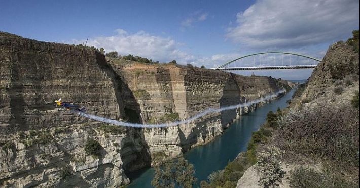 Jedan od najboljih svjetskih pilota, Mađar Peter Besenyei je u Grčkoj sa svojim avionom izveo nevjerojatan let kroz 21 metar široki Korintski kanal. Letjelica teška oko 600 kilograma ima raspon krila 8 metara, što nije mnogo manje od širine samog kanala. Osim trikova i okreta koje je izveo završetak leta začinio je s dva nevjerojatna okreta oko mosta.