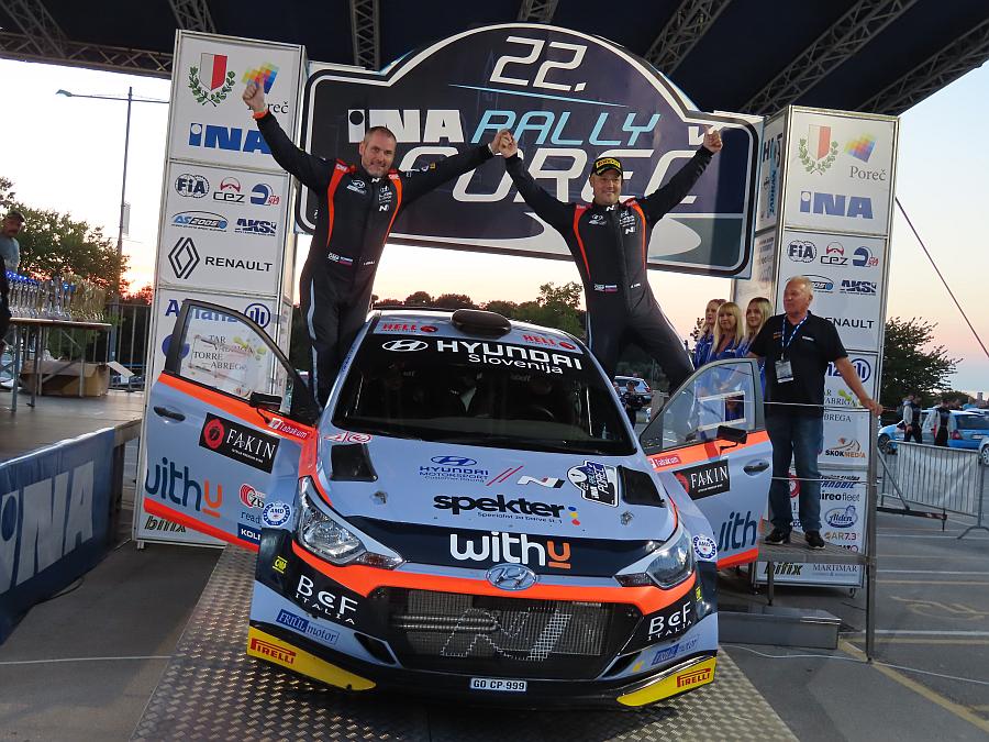 Slovenska posada Rok Turk – Vili Ošlaj u Hyundai i20 R5, slovila je favoritom za pobjedu i uoči natjecanja. No, izravne konkurente imali su u nekoliko mađarskih posada, što se tijekom dva dana i devet od deset predviđenih brzinskih ispita i pokazalo. Iako su prvi dan i dva prolaska u program porečkog rallya povratničkom dionicom BI Sv.Lovreč zaključili „tek“ trećim mjestom, ali minimalnim zaostatkom samo 2,2 sekunde iza dviju mađarskih posada, novi dan i očekivanih osam brzinaca predstavljali su novi početak. Već od jutra najboljim vremenom na prvom prolasku BI Tar, uz Tarsku valu, Mađari Kristof Klausz i Botond Csanyi, u Škoda Fabiji Rally 2 Evo, naznačili su da pucaju visoko u poretku. Međutim, Turk i Ošlaj drugim vremenom preuzimaju lidersku, vodeću poziciju s tadašnjih pet sekundi prednosti, da bi u svoju korist dobili drugi prolazak tarskom dionicom, povećavši prednost za dodatne tri sekunde, ali i namjeru da vodeću poziciju više ne ispuštaju iz svojih ruku.