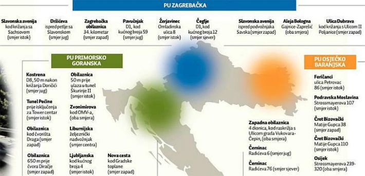 Svi koji su kritizirali presretače i tvrdili kako je jurjava za prebrzim vozačima opasna i neefikasna sada će doći na svoje. MUP pribjegava znatno jeftinijem hvatanju prebrzih vozača na cestama i to postavljanjem fiksnih radara s kamerama na 30 lokacija u Hrvatskoj. No, za sada je u nabavi samo 15 radara s kamerama, pa će tih 15 uređaja rotirati po 30 lokacija, a vozači nikad neće znati je li kutija uz cestu prazna ili ima radar i kameru. No, i to će se u bliskoj budućnosti promijeniti, jer se planira i daljnjih 15 setova radara i kamera, pa bi sve fiksno postavljene kutije bile operativne, i to 24 sata na dan. Ministarstvo unutarnjih poslova raspisalo je natječaj za nabavu fiksnih uređaja za mjerenje brzine i očitavanje registarskih pločica (natječaj je otvoren do 25. veljače), koji će biti postavljeni na stupove javne rasvjete, nadvožnjake i podvožnjake na 30 lokacija u tri regije: Gradu Zagrebu, Osječko-baranjskoj i Primorsko-goranskoj županiji. Uređaji koštaju oko 6,5 milijuna kuna. Odabranih 30 lokacija za kutije odabrano je prema rezultatima statistike koja je pokazala gdje je najviše prometnih nesreća s poginulima ili teško ozlijeđenima. Cijeli sustav nadzora funkcionira kao i onaj koji je prije nekoliko godina postavljen na četiri prometnice u blizini Splita.