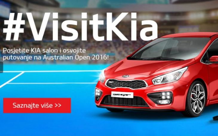 Kia je službeni sponzor turnira Australian Open 2016 , a Kia Motors Hrvatska organizira nagradnu igru #VisitKia. Kako do nagrade? Posjetite KIA salon, prijavite se na testnu vožnju i osvojite putovanje na tenis turnir Australian Open 2016.