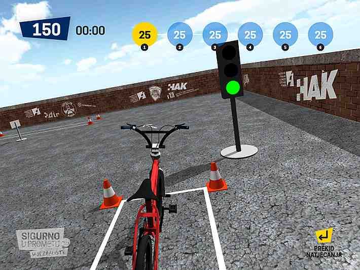 Prije početka nove akcije, sredstvima Nacionalnog programa sigurnosti cestovnog prometa, Hrvatskog autokluba i uz podršku Agencije za odgoj i obrazovanje izrađeno je 3D virtualno vježbalište. Riječ je o edukativnoj računalnoj igri – vjernom prikazu praktičnog dijela akcije „Sigurno u prometu“, koje su danas javnosti predstavili njegovi autori. Virtualni, internetski biciklistički poligon sadrži elemente – prepreke, koje učenici svladavaju tijekom natjecanja u sklopu akcije. Sudjelujući u računalnoj igri, kao pomagalu u pripremi za natjecanje, učenici – sudionici školskih, županijskih ili državnog natjecanja upoznaju se s elementima vježbališta, virtualno voze njima te se upoznaju s vrstama pogrešaka koje se u vožnji mogu činiti i brojem negativnih bodova. Prilikom vožnje sudionici prate svoje napredovanje kroz igru i rezultate, bodovane kao i u realnom natjecanju. Osim što se zabavljaju, tako stječu i vještine važne za samostalno sudjelovanje u cestovnom prometu, istaknuo je mr. Zuber. U Hrvatskom autoklubu procjenjuju da je riječ o jedinstvenoj cjelini u sigurnosnom, prometnom i edukativnom smislu te da nešto slično ne postoji u našoj zemlji niti u sklopu ijednog sličnog natjecanja za učenike osnovnih škola. 3D virtualno vježbalište proizvela je domaća tvrtka Kreativni odjel iz Rijeke. Tvrtka dulje vremena surađuje na projektima povećanja cestovne sigurnosti, razvivši u suradnji s Autoklubom Rijeka edukativni simulator cestovnog prometa Urban Jungle.