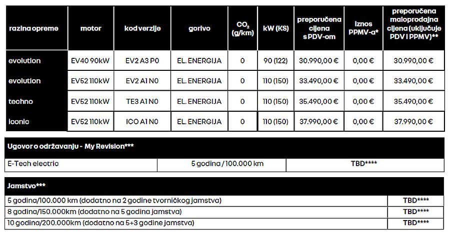 U Hrvatskoj starta cijenom od 30.990 eura koliko košta početni model s opremom Evolution i električnim motorom od 90 kW