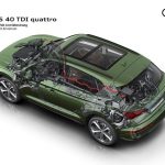 Ovaj nadograđeni premium SUV na tržište Europe dolazi kao Audi Q5 40 TDI (kombinirana potrošnja goriva u l/100 km: 5,4-5,3*; kombinirane CO2 emisije u g/km: 143-139. Njegov snažan dvolitreni četverocilindrični dizelski motor razvija snagu od 150 kW (204 KS) i moment od 400 Nm. Aluminijski blok motora teži približno 20 kg manje od prethodnog motora, dok je radilica lakša za približno 2,5 kg. Blagi hibridni sustav (MHEV) doprinosi niskoj potrošnji goriva. Remenom pokretani starter/generator (BSG) napaja 12-voltni električni sustav vozila, koji uključuje kompaktnu litij-ionsku bateriju. BSG obnavlja energiju kočenja i sprema je u bateriju. MHEV sustav omogućuje modelu Audi Q5 krstarenje s isključenim motorom, te start-stop režim rada pri brzinama ispod 22 km/h. Ukupno gledajući, to rezultira uštedom goriva od približno 0,3 litre na 100 kilometara. Audi Q5 40 TDI (kombinirana potrošnja goriva u l/100 km: 5,4-5,3; kombinirane CO2 emisije u g/km: 143-139 ubrzava od nule do 100 km/h za 7,6 sekundi i dostiže maksimalnu brzinu od 222 km/h.
