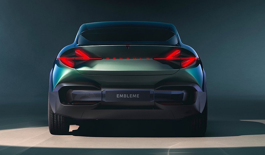 Naglašene obline i linije karavana dodatno ističe dvobojni učinak zelene karoserije čije se nijanse mijenjaju ovisno o tome iz kojeg se kuta promatra. Renault Emblème na profinjen način spaja odlike karavana (njegov veliki međuosovinski razmak iznosi 2,9 m), coupéa (visok je 1,52 m) i fluidnu krovnu liniju. Vozilo je dugo 4,8 m te je kao stvoreno za udobna putovanja s obitelji i svom njihovom prtljagom. Osim toga, Emblème potvrđuje Renaultovu namjeru da, u skladu sa svojom strategijom temeljenom na vrijednosti, nastavi stvarati inovacije u C-segmentu i šire. Nadalje, njegov prepoznatljiv i tehnološki napredan svjetlosni potpis otvara prostor za istraživanje mogućnosti dizajna, nadahnutog čuvenim Renaultovim logotipom. Masa vozila, koja djelomično proizlazi iz njegovih dimenzija, na nekoliko načina snažno utječe na emisije ekvivalenta ugljikova dioksida: prilikom pridobivanja materijala za proizvodnju, proizvodnje vozila, njegova transporta, upotrebe (utjecaj na potrošnju energije) i recikliranja. Primjenjujući pristup temeljen na održivu dizajnu, dizajneri i inženjeri marke uspješno su eliminirali svaki suvišni kilogram i tako dosegli ciljnu masu od 1750 kg (uključujući baterije). Renault Emblème zato teži manje od većine hibridnih SUV-ova ili električnih vozila sličnih dimenzija.