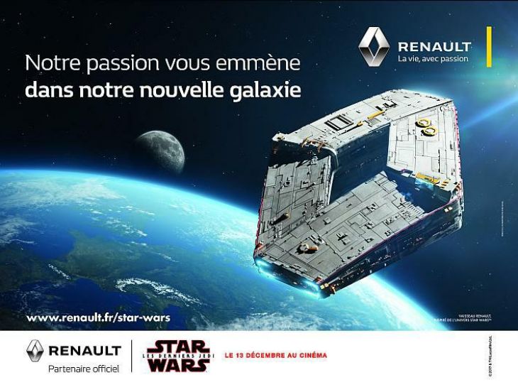 Renault je objavio svoju suradnju s franšizom Ratova zvijezda. Zajednička im je strast prema inovacijama, bogata povijest i višegeneracijski svijet koji nadilazi vjekove. Renault se odlučio na dosad neviđen potez kojim će privremeno promijeniti svoj logotip kako bi odao počast svijetu Ratova zvijezda, koji je snažno obilježio djetinjstva mnogih obožavatelja i nastavlja unositi čaroliju u naše svakodnevne živote. Renault se pridružio pustolovini kako bi podržao sljedeća dva filma iz franšize Ratova zvijezda; Ratovi zvijezda: Posljednji Jedi i Solo: priča iz Ratova zvijezda, čije su premijere zakazane za 13. prosinca 2017. odnosno 23. svibnja 2018. U prosincu će kampanja biti lansirana samo u Francuskoj, a ostatak Europe, pa tako i Hrvatska, pridružit će se na sličan način toj suradnji na proljeće 2018.