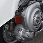 Dvodijelni kotači od 10 inča montirani su s gumama Pirelli SC30, a rezervni je pohranjen ispod lijeve bočne ploče. Rečeno je da je ovjes osvježen tijekom obnove i sastoji se od jednostranog prednjeg kraja s trailing-linkom, kao i jednog amortizera straga. Kočenje je pomoću bubnjeva sprijeda i straga. Na poklopcu upravljača nalazi se brzinomjer Veglia Borletti od 80 mph koji je servisiran, ali ukupna kilometraža nije poznata. Prodavatelj napominje da su zamjenski kabelski svežanj i kabeli za upravljanje mjenjačem instalirani tijekom trenutnog vlasnika.