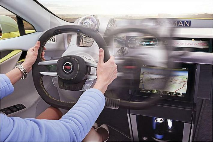 Tako neće biti potrebe za pedalama gasa i kočnice, unutrašnjost će se koristiti više kao dnevni boravak ili prostorija za odmor, jer vozača neće biti, a ako ga i bude upravljač se može seliti s lijeve strane u sredinu pomoću elektromotora. Mnogobrojni i veliki ekrani na dodir pružat će najmoderniju multimediju. Vozit ćemo se autocestom brzinom 120 km/h, a vozač će biti okrenut leđima vjetrobranu i s putnicima razgovarati ili uživati u surfanju, slušanju muzike, gledanju omiljenih filmova ili će se vrijeme iskoristiti za video vezu i radni sastanak na daljinu.