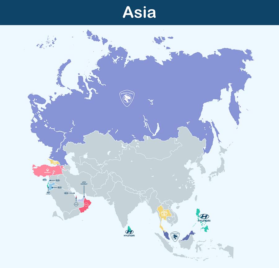 U Tajlandu se njih 51 posto opredjeljuje za Toyotu, a na Corollu otpada 9 posto. Toyota je sa 45 posto jako popularna u Georgia (SAD), odnosno automobil Corolla Sedan (30 posto). No, iza VW i Toyote na trećem mejstu je grupacija KIA-Hyundai čija vozila su najčešća u iznajmljivanju u 10 država.