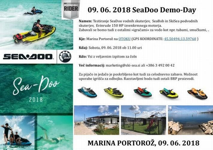 I ove godine priprema se mogućnost testiranja Sea-Doo vodenih skutera, SeaBob i SkiSea podvodnih skutera, Evinrude 150 HP vanbrodskog motora i ostale „igračke” za vodu kao npr. tube, skije, wakeboard, … ovaj put u Marini Portorož 09 Lipnja 2018 u suradnji sa H2O CENTER D.O.O.