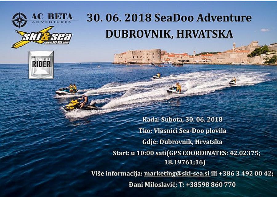 Sea-Doo Adventure je druženje uz veću grupu ljudi (vlasnici Sea-Doo vodenih skutera), koji zajedno otkrivaju nove lokacije i jednostavno uživaju sa svojim plovilom. Smještaj, gorivo, troškovi prijevoza i ostali osobni troškovi itd. su na vlastiti trošak. Servisna potpora u izvanrednim slučajevima osiguran je za Sea-Doo plovila i nalazi se u neposrednoj blizini samog događaja. Parking za auto i vodeni skuter osiguran u hotelima uz najavu.