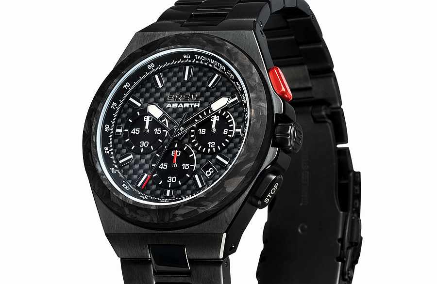 – Novi kronograf Breil Abarth 1000 ima crno kućište od IP čelika, kovanu karbonsku lunetu, brojčanik od karbonskih vlakana i tipke START i STOP inspirirane kontrolama trkaćih automobila.