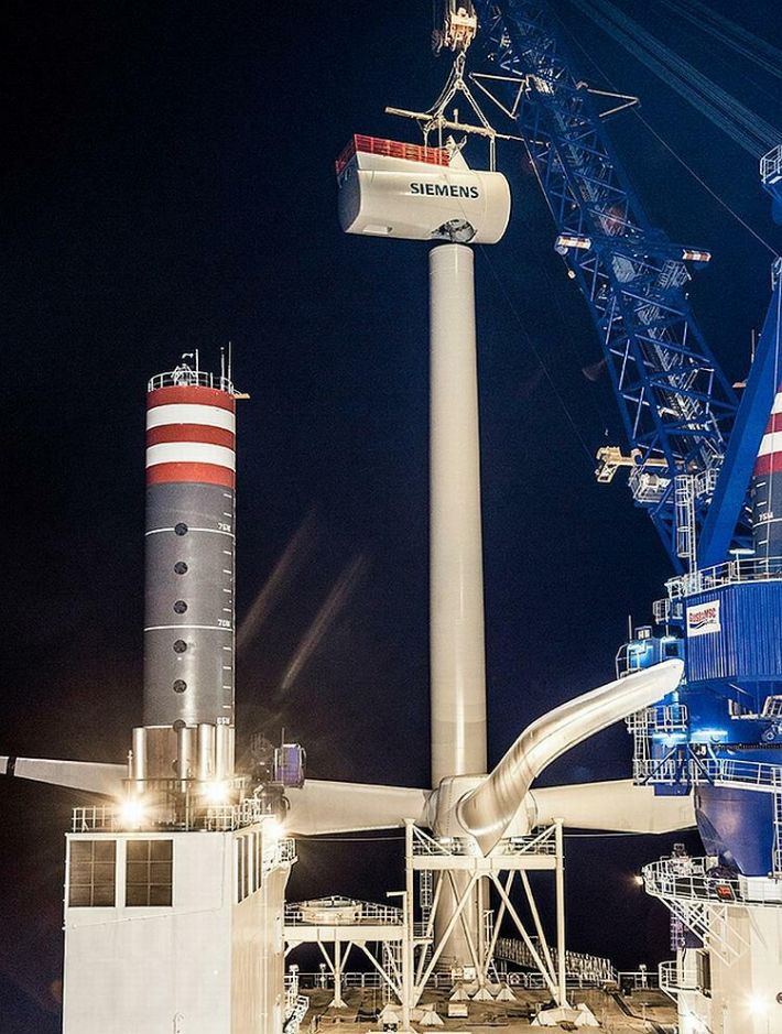 Siemens je objavio fotografije izgradnje dvije offshore vjetroelektrane SWT-6.0-154 gigantskih dimenzija i snage od 6 MW svaka. Za postavljanje vjetroturbine i vjetroelektrana koristi se posebno konstruiran brod nazvan Sea Installer, sve u cilju smanjenja troškova izgradnje ovako ogromne offshore turbine. To je izuzetno značajno ako se zna kako se u skoroj budućnosti očekuje izgradnja još većih vjetroelektrana snage čak od 10 MW. Posebno konstruiran brod Sea Installer dugačak je 132 metara i širok je 39 metara, te bez problema nosi dijelove konstrukcije vjetroelektrane SWT-6.0-154 te ju sklapa na otvorenom moru.