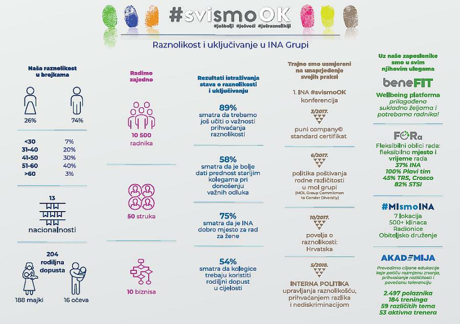 U Ininoj upravnoj zgradi održana je konferencija #svismoOK s ciljem promicanja kulture raznolikosti i uključivanja na radnom mjestu uz bogate popratne sadržaje namijenjene zaposlenicima. U Ini je 2017. godine održan prvi dan otvorenih vrata za zaposlenike, a ove godine je #svismoOK dan prerastao u konferenciju s renomiranim predavačima iz područja raznolikosti i uključivanja, mnogobrojnim radionicama za zaposlenike, Sajmom kulture te vanjskim gostima.