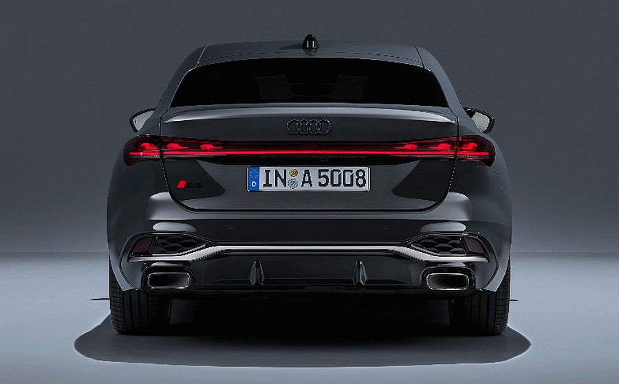 Upečatljiv i prepoznatljiv stražnji kraj kombinira sportski, emotivan dizajn i inteligentnu tehnologiju. Kombinacija skulpturalne geometrije i kontinuirane, trodimenzionalno pomaknute svjetlosne trake čini stražnji kraj novog modela Audi A5 upečatljivim i vizualno dinamičnim. Ostale istaknute značajke pogleda straga na osnovnim modelima jasan su i moderan dizajn branika s tamnim difuzorom te visokokvalitetni pravokutni završetci ispušnih cijevi.