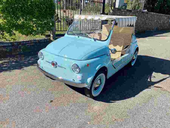 S interijerom od pruća i krovom od platna ovaj 500 na otvorenom izgleda savršeno za putovanje u ljeto – Ovaj klon Fiat 500F Jolly iz 1971. izgleda kao idealno vozilo za odmor. – Ima pleteni namještaj za sjedala, zapravo veliki ručnik za plažu kao krov, i nema vrata, ali također – nažalost – nema držača…