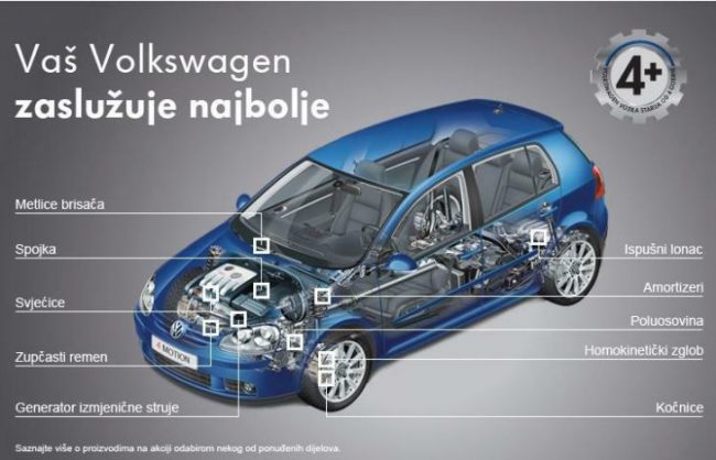 Kako bi vaš Volkswagen i nakon 4. godine starosti zadržao pouzdanost i sigurnost koje garantira ugradnja kvalitetnih originalnih dijelova od strane vrhunski educiranog i kvalificiranog osoblja, ovlaštena Volkswagen servisna mreža pripremila je akcijsku ponudu paketa originalnih dijelova s ugradnjom za sva vozila starija od 4 godine. Posjetite svoj ovlašteni Volkswagen servis i iskoristite povoljne cijene…