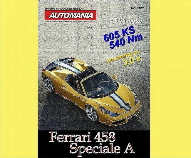 Prilog o Ferrari 458 Speciale A, zadnjem super automobilu iz Maranella s atmosferskim motorom, predstavljamo kao PDF prilog u elektronskom obliku na servisu issuu.com, kao elektronski časopis. I to besplatno, bez zahtjeva za registracijom i bilo kakvim plaćanjem… Slobodan i besplatan je i download za off-line čitanje, a sve to dobijete u najkraćem mogućem…