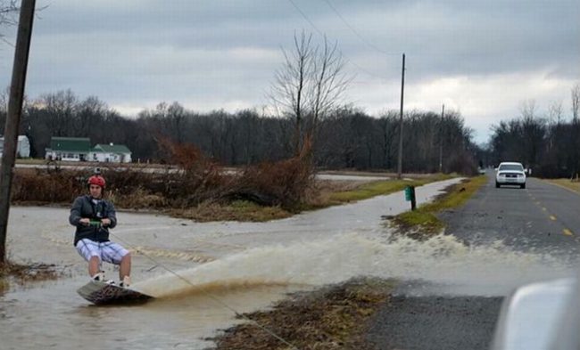 Osobni automobil ili pick-up, trenutci poslije velikog nevremena i velike kiše, grabe pune vode, daska i dovoljno ludih za napraviti nešto jako opasno i nerazumno – sve je spremno za automobilski ili pick-up wakeboarding. Trenutke po prestanku ogromnog nevremena s jakom kišom , gradske ulice, polja, kanali i grabe uz cestu ispunjene vodom, potaklo je…