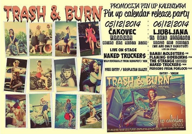 TRASH&BURN – miting američkih automobila i rock&roll festival, već tradicionalno krajem godine izdaje pin-up kalendar koji je fotkan na mitingu u Sv.Martinu na Muri. Promocija kalendara održat će se 11.12.2015. u Čakovcu (Podroom drink&music club). Kalendar je limitiran u svega 350 primjeraka, full color, dimenzija 240x340mm i moći će se nabaviti na samoj promociji po…