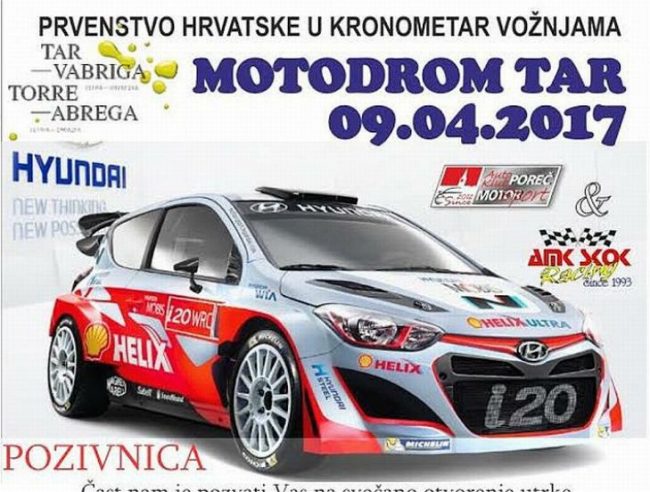 Pod pokroviteljstvom Općine i TZ Općine Tar-Vabriga, u nedjelju, 09.04.2017. na karting stazi tarskog “Motodroma” održati će se prva utrka Prvenstva Hrvatske u kronometar vožnjama, u zajedničkoj organizaciji auto klubova “Skok racing” i “Poreč motorsport”. Na utrci pod nazivom “Hyundai Autokuća Košara – 13. Nagrada Tar-Vabriga 2017” nastupiti će najbolji vozači i vozačice iz Hrvatske.…