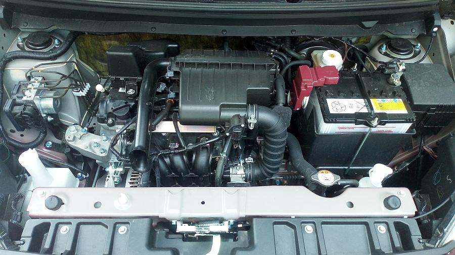 Testirani automobil Mitsubishi Space Star 1.0 MT Entry pokreće mali, ali živahan trocilindrični motor obujma 999 ccm. To što ima jedan cilindar “manjka” vidi se po nešto većim vibracijama koje proizvodi, ali ništa strašnog. I po zvuku, koji je dosta prigušen, ima karakterističan zvuk trocilindričnog motora. U vožnji nedostatak jednog cilindra prije svega osijetite po tome kako za kretanje treba dodati nešto više gasa, te motor kao takav ne voli jako niske okretaje. Tri cilindra ima 12 ventila i DOHC razvod, te kao takav ovaj benzinski motor ispunjava Euro 6d normu. Moramo odmah napomenuti kako uz model Entry dolazi samo 1,0 litreni motor. Space Star inače osim s 1,0 litrenim motorom (52 kW) dolazi i s većim 1,2 litrenim benzinskim motorom (59 kW), ali u kombinaciji s boljom opremom.