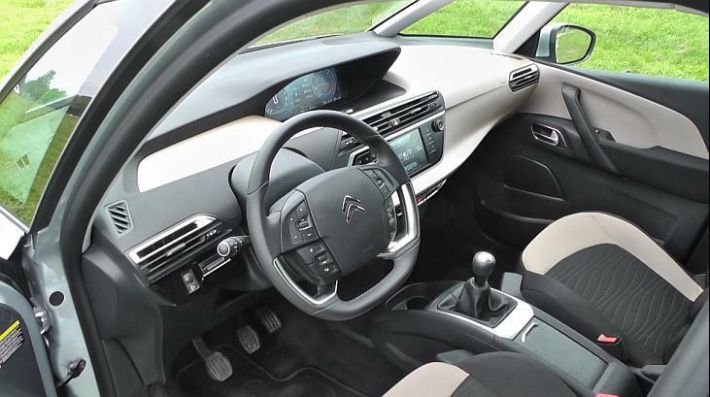 Ugođaj prostranosti prenesen je i u unutrašnjost modela C4 sa serijskim velikim panoramskim vjetrobranom. Površina ostakljenih površina najveća je u klasi i iznosi čak 5,30 m2. Technospace pojam pod kojim je i lansiran Citroën C4 Picasso na taj se način proteže kroz cijeli automobil: od dizajna, prostranosti do ugrađenih najmodernijih tehnologija. Središnje mjesto u unutrašnjosti rezervirano je za tablet 7″ osjetljiv na dodir kojim se upravlja gotovo svim funkcijama vozila: dvozonskim klimatizacijskim uređajem, navigacijom, glazbenim sustavom, telefonom, sustavima za pomoć u vožnji, internetskim uslugama itd. Sedam tipki smještenih oko ovog uređaja omogućuje direktan i brz pristup nekim funkcijama. Cijeli ovaj sustav zahtjeva određen period privikavanja i u svakom slučaju nije praktičan kao prekidači za koje vozač stekne naviku na kojem su mjestu. Problem je dodatan i skretanje pozornosti vozača kada primjerice želi promijeniti temperaturu u vozilu…