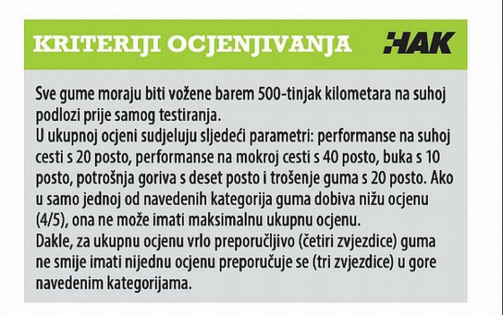 Pravo je vrijeme za odabir ljetnih guma. Na tradicionalnom testu Hrvatskog autokluba i njegovih partnera ovoga su se puta našle ljetne gume u dimenzijama 175/65 R14T i 195/65 R15 V. Rezultati i ovaj put pokazuju napredak, no potraga za odlikašem i dalje traje. Hrvatski autoklub i njegovi partneri tradicionalno početkom godine provode test ljetnih guma, kojem su ove godine podvrgnute dvije vrlo korištene dimenzije, manju 175/65 R14T, koju voze mali gradski automobili dok onu veću, 195/65 R15 V, na cesti koriste vozila kompaktne i niže srednje klase. Riječ je o dimenzijama zanimljivim hrvatskim vozačima koji uglavnom voze automobile iz upravo tih razreda. Zbog toga je ovaj test vrlo koristan članovima HAK-a i onima koji to tek trebaju postati, koji se ovoga proljeća spremaju na promjenu guma. Testiranje se provodi kako bi savjetovali vozače i olakšali im izbor, pomogli u donošenju ispravne odluke i odabiru s idealnim omjerom uloženog i dobivenog. Rezultati su korisni i vozačima koji si ne mogu priuštiti najbolje testirane gume, ali mogu procijeniti koji su im od testnih kriterija osobno najvažniji. Primjerice, jesu li im bitnije karakteristike na suhoj cesti ili ne žele brinuti o upravljivosti na mokroj podlozi.