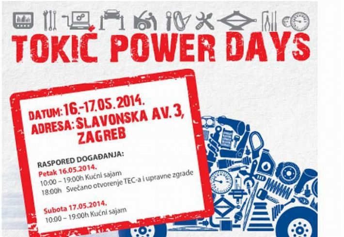 Tvrtka Tokić d.o.o. organizira TOKIĆ POWER DAYS – kućni sajam alata i servisne opreme za automehaničare i električare, te ponudu autodijelova, koje će se održati u petak 16.5. i subotu 17.5.2014. na adresi Slavonska avenija 3, 10000 Zagreb. U sklopu eventa biti će upriličeno svečano otvorenje Tokić Edukacijskog Centra – TEC-a koji će uz prisustvo mnogobrojnih gostiju, uzvanika, partnera, dobavljača i kupaca tvrtke Tokić otvoriti najbolji mladi mehaničar Antonio Buljević (1995. godište) iz Splita koji je aktualni državni prvak školskog natjecanja struke automehaničar koje je održano u travnju u Zagrebu, a isto je sponzorirala tvrtka Tokić. Osim sajma alata i servisne opreme, posjetitelji će također moći razgledati automobile TOKIĆ RACING TEAM-a, te prvi hrvatski električni automobil – Concept_One, koji je predstavila tvrtka Rimac-automobili iz Svete Nedjelje.