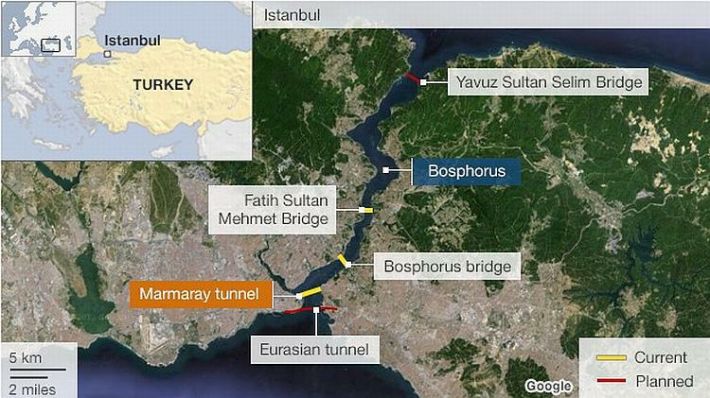 Istanbul je jedan od najvećih svjetskih gradova u kojemu živi oko 12,5 milijuna ljudi, a svaki dan se njegovim ulicama kreće i više od 16 milijuna ljudi. Jedan od najvećih problema je izuzetno gusti promet. Azijsku i europsku stranu Bospora povezuje velik broj trajekata, a tu je i veliki Bosporski most za čiji se prelazak vozilima plaća prelazak samo u jednom smjeru. Izgradnju ovog mosta izdašnim financijskim donacijama pomogao je i talijanski Fiat. Svaki dan Bospor prelazi najmanje dva milijuna ljudi, a za to su korištena samo dva mosta i trajekti. Novi podvodni željeznički tunel moći će prevesti svaki sat oko 75.000 ljudi u oba smjera.