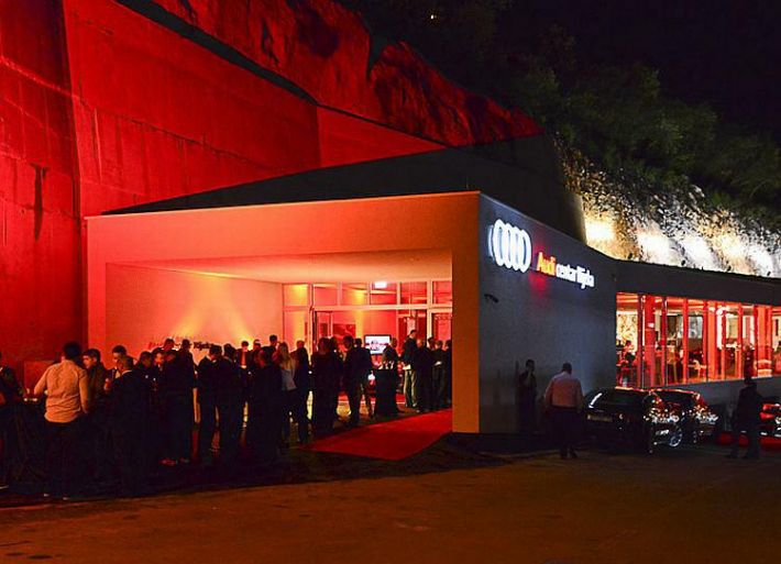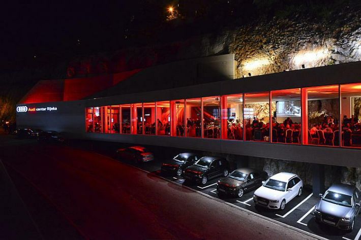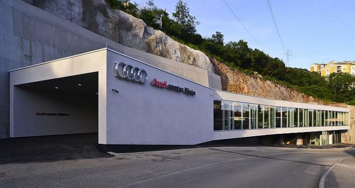 Riječ je o Audi salonu koji će osim zaljubljenicima marke biti zanimljiv i ljubiteljima neobične arhitekture i dizajna. Ovaj prekrasan objekt, netipičan za standarde tvornice, u svojim nacrtima je bio toliko jedinstven, impresivan i izazovan da ga je AUDI AG potvrdio te time učinio Audi centar Rijeka unikatnim prodajnim salonom marke u svijetu. Uklesan u prirodnoj stijeni odiše elegancijom, perfekcionizmom i inovativnošću. U 700 m2 atraktivnog prostora Audi centar Rijeka nudi prodaju novih Audi vozila, dok se servis vozila nalazi u prostorijama glavnog servisnog centra, koji se prostire na 8340 m2 i nalazi se preko puta novog salona.