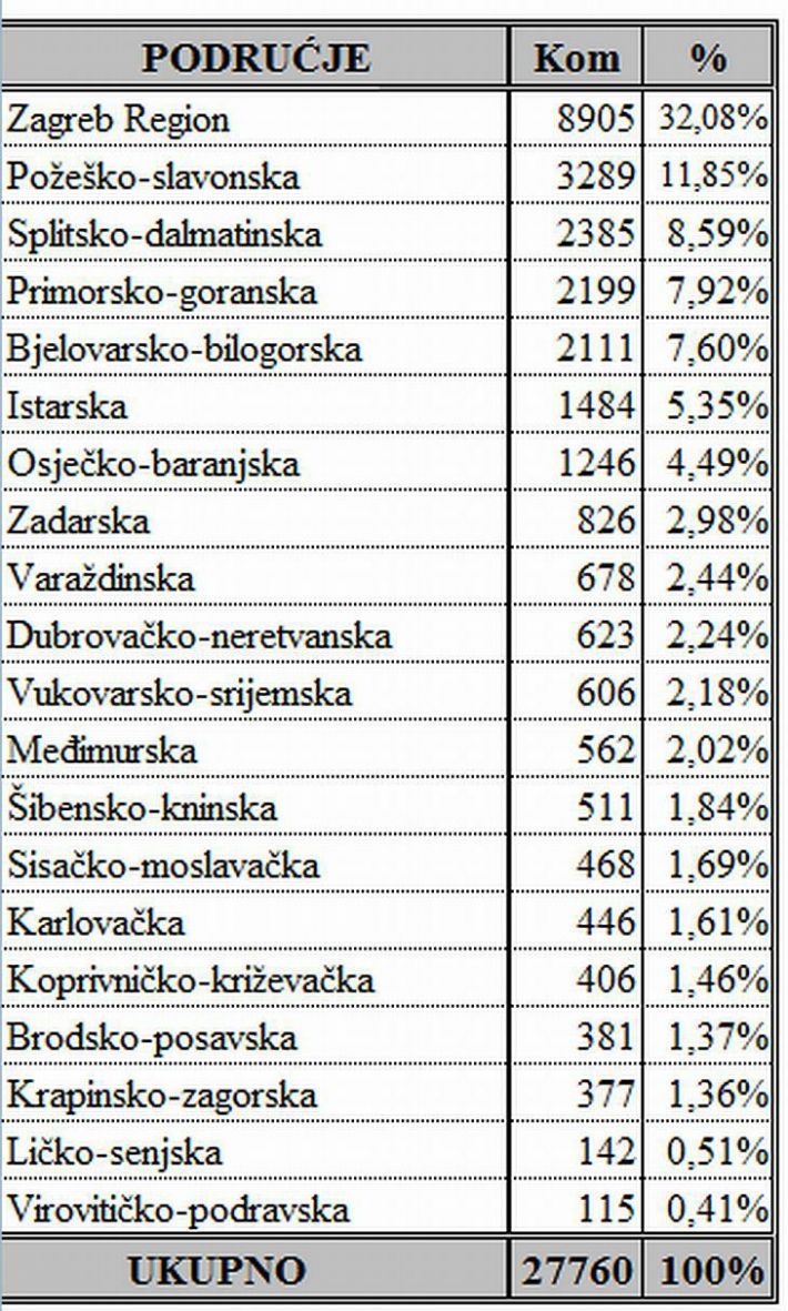 Premda su nakratko zaustavljeni negativni trendovi moramo biti oprezni, jer velik broj prodaje ipak se odvija flotama, a ne pojedinačnom prodajom. U rujnu 2014. godine u Hrvatskoj je registrirano samo 1.994 novih automobila, što je drugi najlošiji rezultata ove godine, alošiji je biosamo kolovoz 2014. sa samo 1.573 registriranih novih automobila. Rezultat u siječnju 2014. godine (2.080 automobila) nije bio obećavajući za nastavak 2014. godine. Prema podacima agencije Promocija plus u devet mjeseci 2014. godine je registrirano 27.760 novih osobnih automobila, što je rast prodaje od 26,39 posto u odnosu na prvih devet mjeseci 2013. godine kada je registrirano 21.964 novih automobila. U 2013. godini prodano je mršavih 27.802 novih automobila u Hrvatskoj, pa je isti rezultat postignut za devet mjeseci 2014., pa bi do kraja 2014. godine mogli računati s otprilike 37.000 novo registriranihautomobila. Jedan mali vedri podatak nakon dugo vremena u inače sivoj i negativnoj atmosferi.