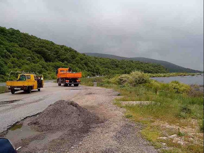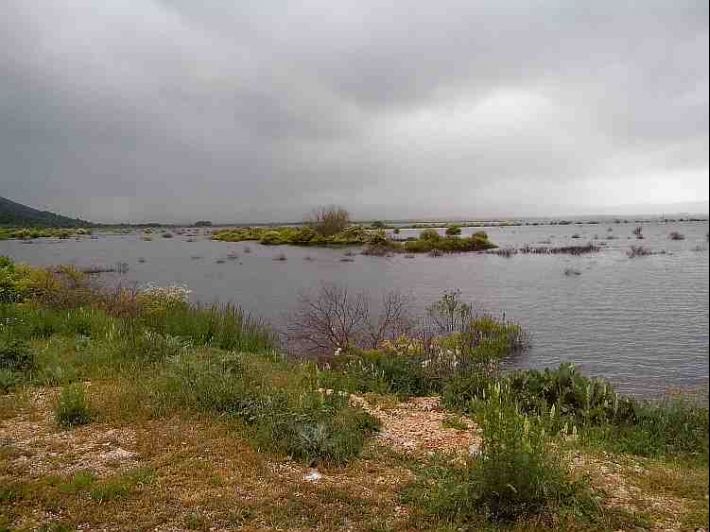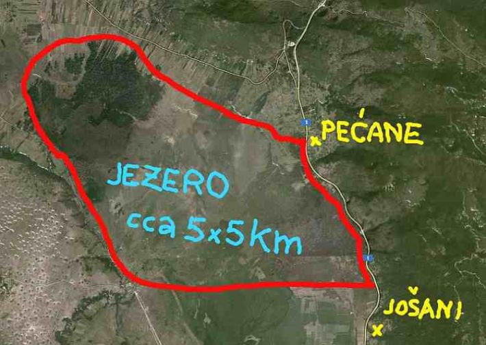 Škljocaju aparati turista i pitaju otkud tolika količina vode? Ne vjeruju svojim očima, kao ni mi! Jer, jezera na svim mogućim kartama nema. Jezero tu nikada nije bilo, samo viša trava i nešto niža drveća. Ovo jezero nastalo je ove zime i rezultat je otopljene enormne količine snijega. Voda nema kamo. Vrtače koje inače gutaju vodu u podzemlje očito su se začepile granjem. A kiša i u svibnju u obilnoj količini lijeva kao iz kabla. Saznamo svakakve bezvezne vijesti iz cijelog svijeta, a o ovom fenomenu nitko ništa. Pred nosom nam je pa nije interesantno? Strancima jest, zaustave se i snimaju…a mi?
