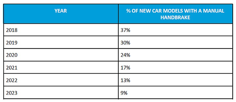 – Kupci automobila sada imaju 61% manje automobila na izbor koji dolaze opremljeni ručnom kočnicom u usporedbi s 2019.