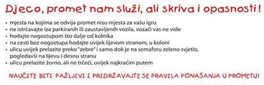 U prvih osam mjeseci ove godine, osim smanjenja broja smrtno stradale (22,2 posto), smanjio se i broj teško ozlijeđene djece (7,9 posto). Također,obećavajuće zvuči podatak o smanjenju broja poginule djece kao putnika, ali nažalost ukupno stradavanje u ovom svojstvu je i dalje najveće (udjel 56 posto). Zbog svega navedenog, u sklopu strateških aktivnosti Nacionalnog programa sigurnosti cestovnog prometa, policija je dakle i ove godine započela s akcijom Poštujte naše znakove!, poduzimajući neke aktivnosti prije, a veći dio nakon početka školske godine.