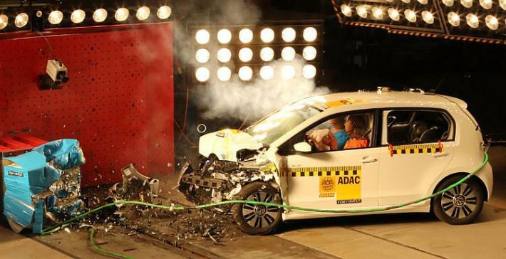 Koliko su sigurni električni automobili? Ovo pitanje postalo je jako važno i mnogi potencijalni kupci postali su sumnjičavi, jer su unazad nekoliko godina zabilježena više slučaja zapaljenja Tesla vozila nakon sudara. ADAC je odlučio provjeriti koliko je električni automobil siguran u sudaru, te je ispitivanju podvrgao čisto električni automobil VW e-Up! koji je razbio u simuliranom crash sudaru. ADAC je donio svoj zaključak: