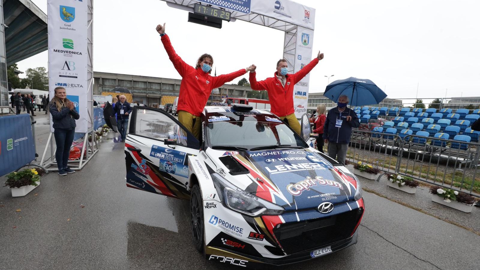 ZAGREB – Poslije dvije godine, češki automobilisti Ondrej Bisaha i Petr Tešinsky, ponovo su u Zagrebu ispijali pobjednički pjenušac, ovog puta u konkurenciji 44 posade tradicionalnog i najznačajnijeg hrvatskog rallya „Zagreb Open 46.Ina delta rally 2020.“, u još jednoj uspješnoj organizaciji Autokluba Ina Delta Zagreb. Vremenske prilike u ovom rujanskom izdanju kultne „Delte“ niti sudionike, niti brojne sudačke i tehničke službe nisu mazile, a organizacijski je, duž 403 km itinerera i deset BI šireg zagrebačkog okruženja, sve trebalo prilagoditi specifičnostima „novog normalnog“ uzrokovanog pandemijom „Covid-19“. Prvog su se dana vozila po dva brzinca pored upravne zgrade glavnog pokrovitelja INA Industrije nafte d.d. i sjedišta manifestacije Zagrebačkog Velesajma, te poslije niza godina ponovo u okruženju Jastrebarskog, na znanim reli dionicama jaskanskog gorja.